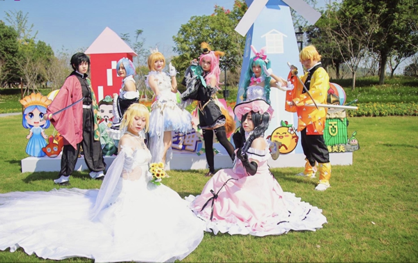 Cosplayers pose in the flower fields in Jingshan town of Yuhang district in Hangzhou, capital of East China's Zhejiang province. From May 1 to May 5, an animation carnival is held at the flower fields at the Jingshan town of Yuhang district of Hangzhou. [Photo/WeChat account: jingshanhuahai]