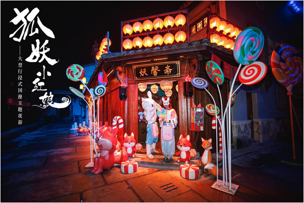 Located on the banks of the Liuxi River in Heqiao Ancient town, Lin'an district, Hangzhou, the Fox Spirit Matchmaker Scenic Spot is based on an anime of the same name. It is the first theme park to integrate immersive performances with night tours.