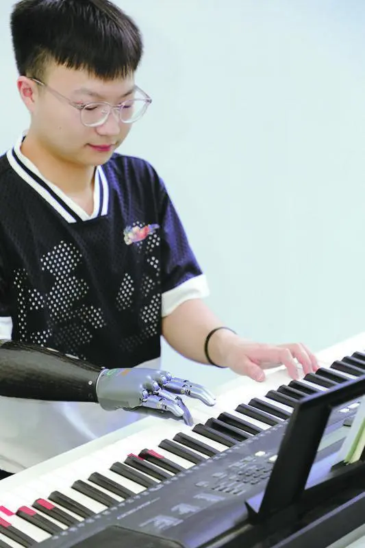 Zhou Jian plays the piano with his bionic hand. [Photo/hangzhou.com.cn]